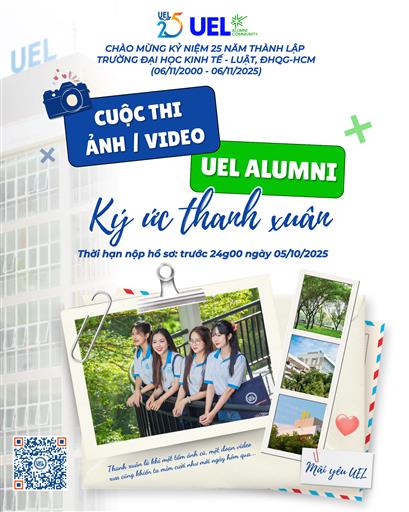 Hòa nhịp vào dòng chảy của chuỗi sự kiện UEL Alumni 25 năm “Kết nối - Khát vọng” kỷ niệm 25 năm thành lập Trường Đại học Kinh tế - Luật, ĐHQG-HCM, Trường phối hợp cùng UEL Alumni - Ban Điều hành lâm thời Cộng đồng Cựu người học UEL đã phát động tổ chức Cuộc thi ảnh/video “UEL Alumni - Ký ức thanh xuân”.